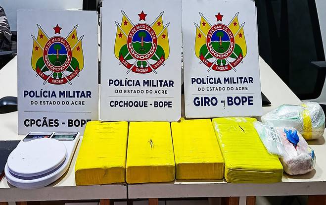 Policiais militares da Companhia de policiamento de choque (Cpchoque), Grupo de intervenção rápida e ostensiva (Giro) e da Companhia de policiamento com cães (Cpcães) apreenderam na tarde de terça-feira, 05, no bairro Vitória, 4.5 quilogramas de entorpecentes, após denúncia anônima.