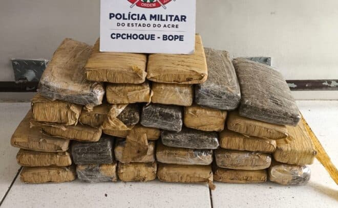 Militares do Companhia de Policiamento de Choque (CpChoque) da Polícia Militar apreenderam aproximadamente 30 quilos de entorpecentes na tarde desse domingo, 09, no bairro Panorama, parte alta de Rio Branco.
