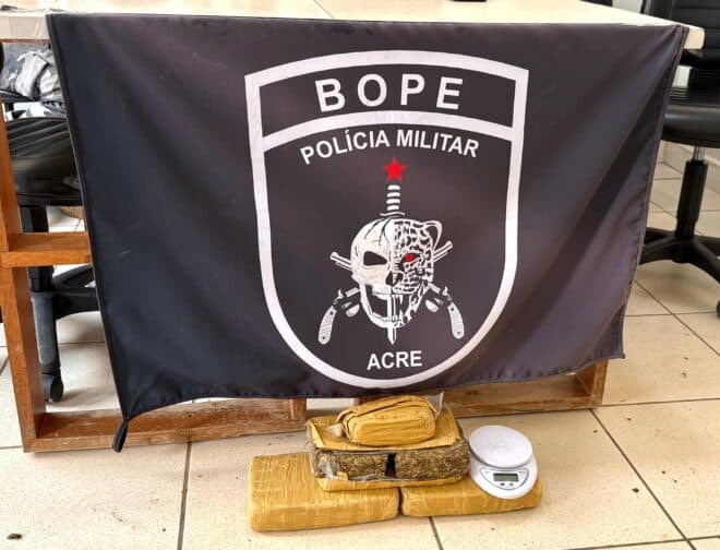 Com o objetivo de coibir o tráfico de drogas e intensificar o enfrentamento ao crime organizado, o Batalhão de Operações Especiais (BOPE), por meio da Companhia CHOQUE, com apoio da Companhia de Policiamento com Cães (CPCAÊS), apreendeu quase 3,5 quilos de maconha na tarde desta quarta-feira (4), em Rio Branco.