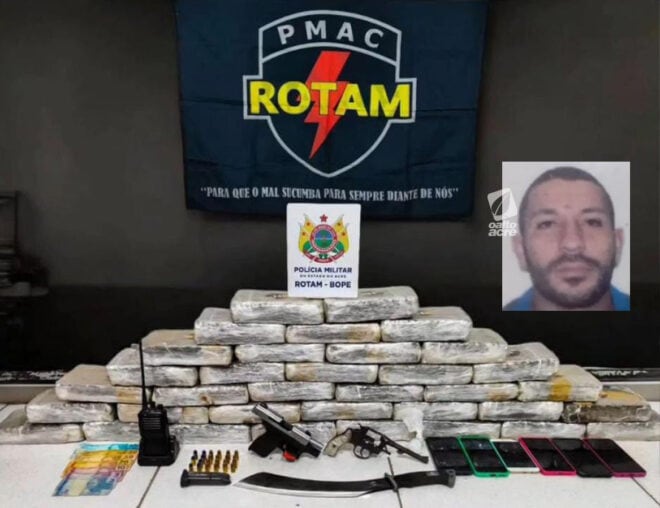 Uma operação realizada na tarde deste sábado (7) pelo Batalhão de Operações Especiais (BOPE), por meio da Companhia ROTAM, resultou na prisão de Jardemilson Rodrigues de Oliveira, de 34 anos, no bairro Calafate, em Rio Branco. O homem foi flagrado com grande quantidade de drogas, armamento e outros itens relacionados ao tráfico.