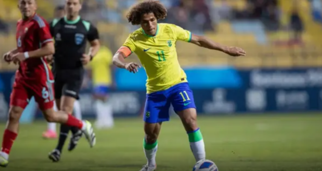 Diferente de sua estreia nos Jogos Pan-Americanos de Santiago, o Brasil não demorou muito para abrir o placar contra a Colômbia. Aos 14 minutos, Matheus Nascimento desperdiçou uma grande chance depois de ser presenteado pelo zagueiro na entrada da área. Na sequência, aos 16, o atacante serviu Guilherme. O camisa 11 saiu na cara do gol e mandou de chapa no canto esquerdo.