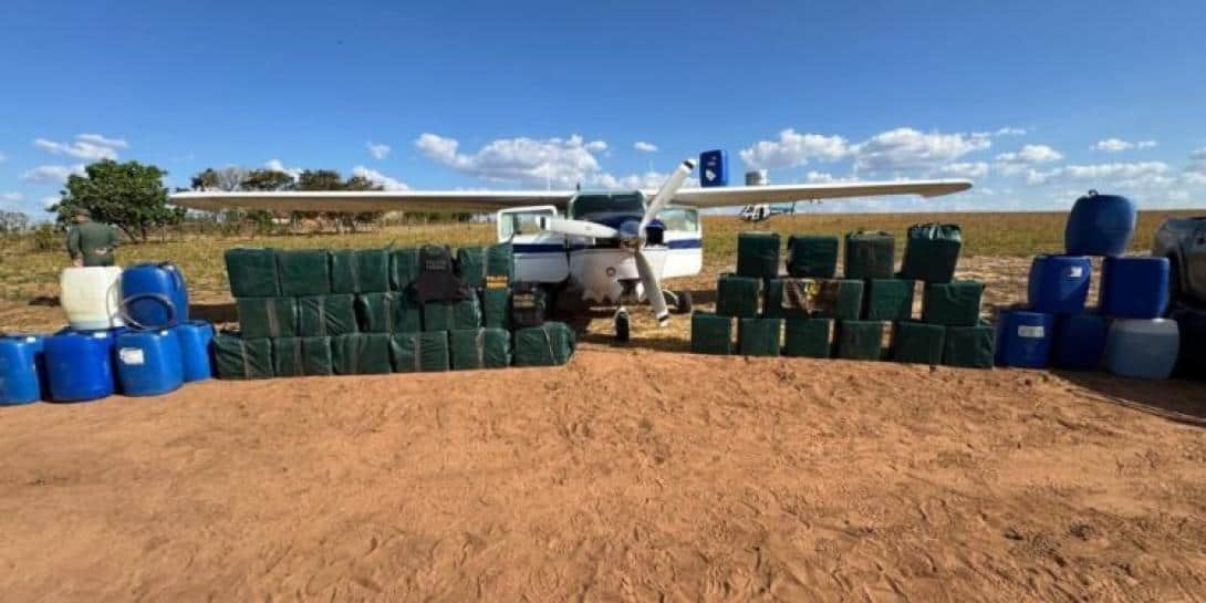 No local, as autoridades apreenderam 31 fardos de cocaína — 17 ainda dentro da aeronave, parte em uma caminhonete em processo de carregamento e o restante escondido em áreas de mata.