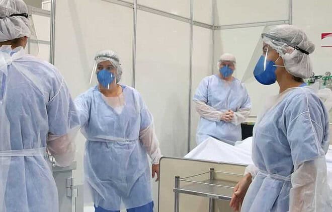 Médicos fazem treinamento no hospital de campanha para tratamento de covid-19 – Foto/Divulgação