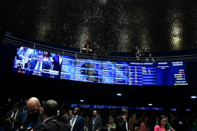 O relator do projeto no Senado, Eduardo Braga, incluiu um teto de referência para travar o aumento de impostos. A trava terá como base a arrecadação média do setor público entre 2012 e 2021 em relação ao PIB. Caso a arrecadação cresça mais que essa média, a alíquota de referência dos novos tributos será reduzida.