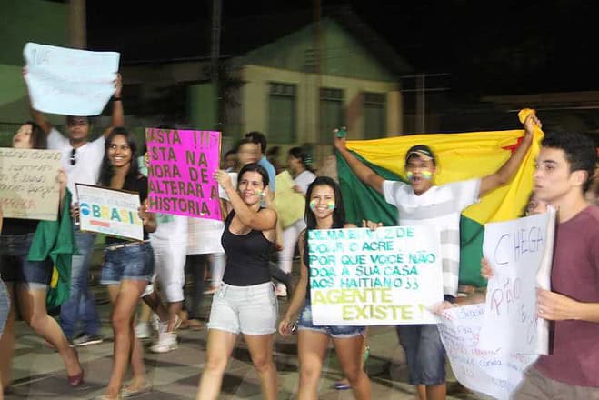 Já em Brasiléia, pararam em frente a Câmara Municipal e pedindo fim a corrupção e melhorias para o Acre e o Brasil em geral e depois, Seguir para o final da caminhada na praça Ugo Poli. Segundo foi apurado, esta seria a segunda manifestação no interior do Estado.