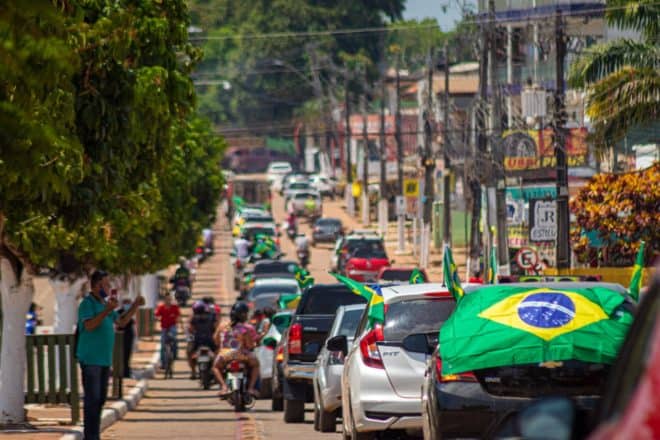De maneira pacífica e ordeira, dezenas de veículos realizaram uma carreata pelas principais ruas das cidades de Brasiléia e Epitaciolândia nesta terça-feira, 7 de setembro, dia em que se comemora o 199º dia da Independência do Brasil.