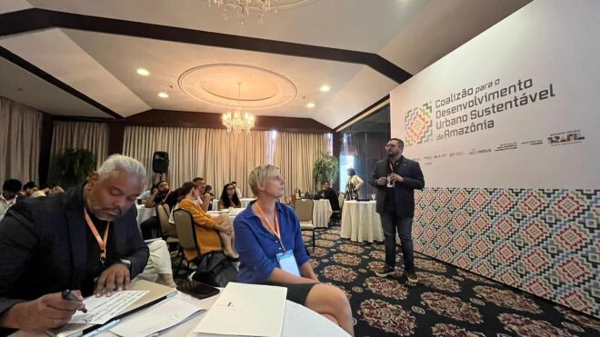 A capital do Pará tem um programa voltado à regularização fundiária desde 2019, e viu a chance de encontrar maior expertise no tema com o projeto ANDUs. “A principais partes que foram postas em prática no município foi quanto a inclusão da temática climática nos projetos de regularização fundiária e o aprofundamento no zoneamento ambiental urbano, aprendidos nos encontros”, conta Erica Pinheiro, coordenadora de Regularização Patrimonial da Companhia de Desenvolvimento e Administração da Área Metropolitana de Belém.