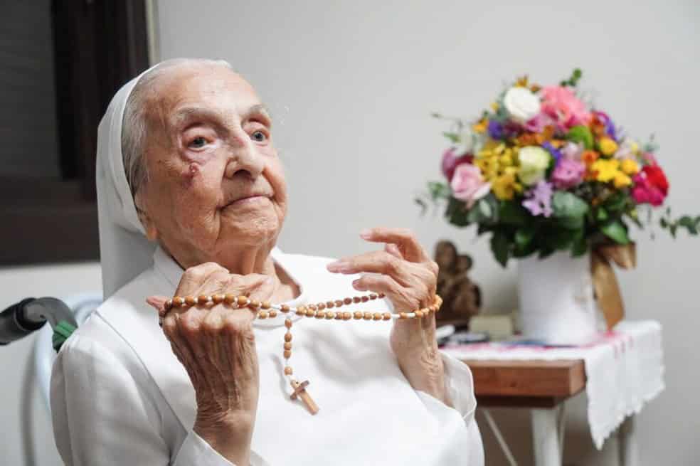 Nascida na cidade gaúcha de São Francisco de Assis, a freira Inah Canabarro Lucas tem 116 anos.