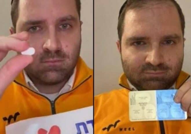 Simcha Neumark, de 33 anos, foi o primeiro a utilizar o medicamento após contrair Covid, em Israel Foto: reprodução redes sociais