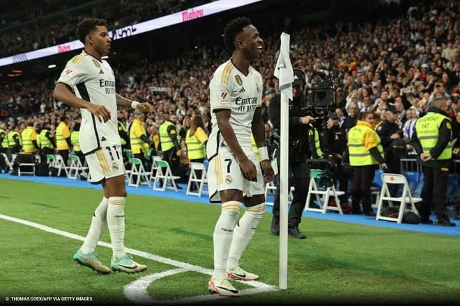 Já na reta final, Vinicius Júnior foi substituído e ganhou muitos aplausos dos torcedores do Real Madrid. Deu tempo para mais, ainda com brilho brasileiro. Aos 39, Rodrygo recebeu de Fran García, tirou fácil da marcação e de pé esquerdo mandou mais uma bola para a rede. Do outro lado, depois de perder grandes chances, Hugo Duro marcou aos 43, quando completou de primeira dentro da área. 5 a 1 para os merengues.