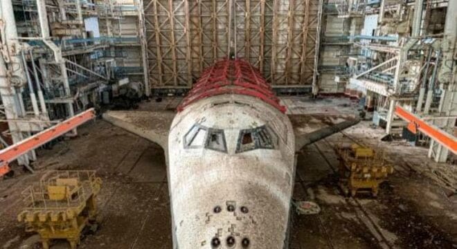 O britânico conhecido como Greg Abandoned encontrou uma nave espacial desenvolvida pela União Soviética durante a Guerra Fria abandonada dentro de um hangar no meio do deserto. O equipamento não está em perfeito estado e tem vários pontos danificados, mas ainda vale 189 milhões de libras, cerca de R$ 1,1 bilhão.