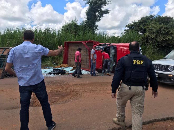Os ocupantes saíram ilesos com pequenos ferimentos pelo corpo após o caminhão tombar fora da estrada. Patrulheiros da PRF foram até o local para fazer o registro do sinistro.