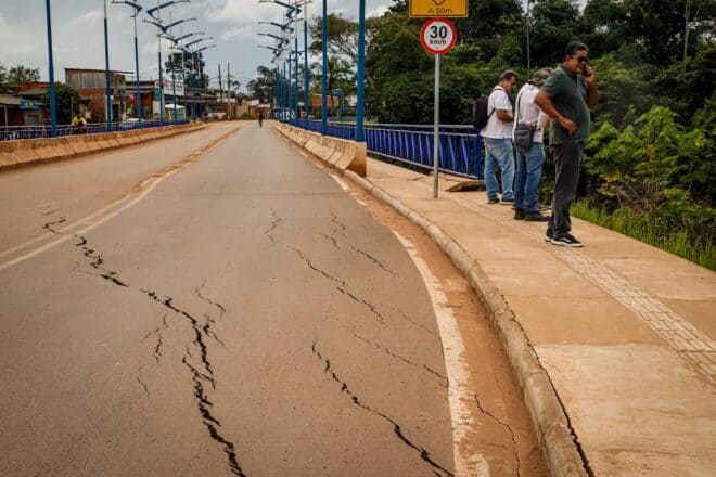 “A ponte em si não apresenta problemas. O que ocorreu foi um deslocamento no aterro da cabeceira, que, por ser recente, ainda não estava totalmente consolidado. Esse tipo de movimentação é natural após uma grande alagação, pois o solo sofre com a variação da carga d’água. Como resultado, houve uma pequena fissura no asfalto e um deslocamento na calçada, mas sem impacto na trafegabilidade da via”, explicou o secretário.