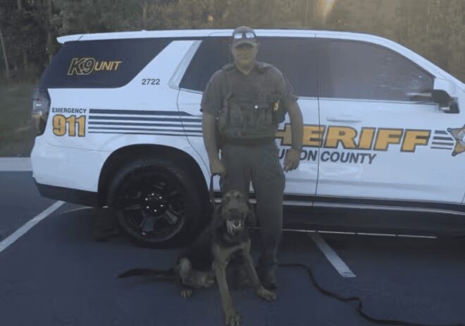 O cachorro policial Remi foi usado para encontrar a casa de um menino autista perdido. Foto: Gabinete do Xerife do Condado de Union.