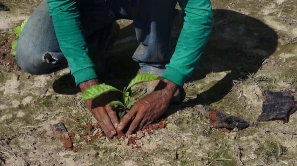 A cadeia produtiva do café, está aquecendo a economia rural e gerando emprego no campo. É o caso do seu Marisa Penha. Ele está plantando mudas nessa propriedade na diária.