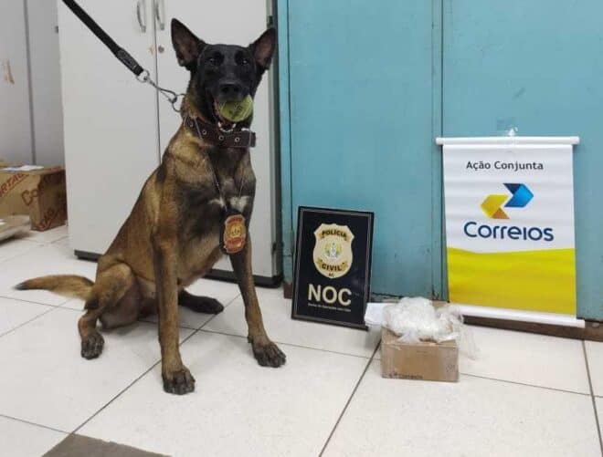 Com a ajuda de cães farejadores a Polícia Civil do Acre (PCAC) realizou duas apreensões de drogas no pátio do despacho dos correios em Rio Branco, uma no dia 27 e outra na última segunda-feira, 30, somadas a quantidade de entorpecentes chegam a 800 gramas de cocaína.