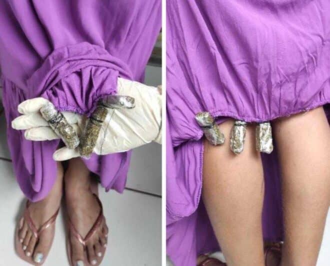 A ação realizada por policiais penais aconteceu na tarde deste sábado, 15. Para não chamar a atenção a mulher, dividiu a droga e fixou em várias partes fixou abaixo da cintura.