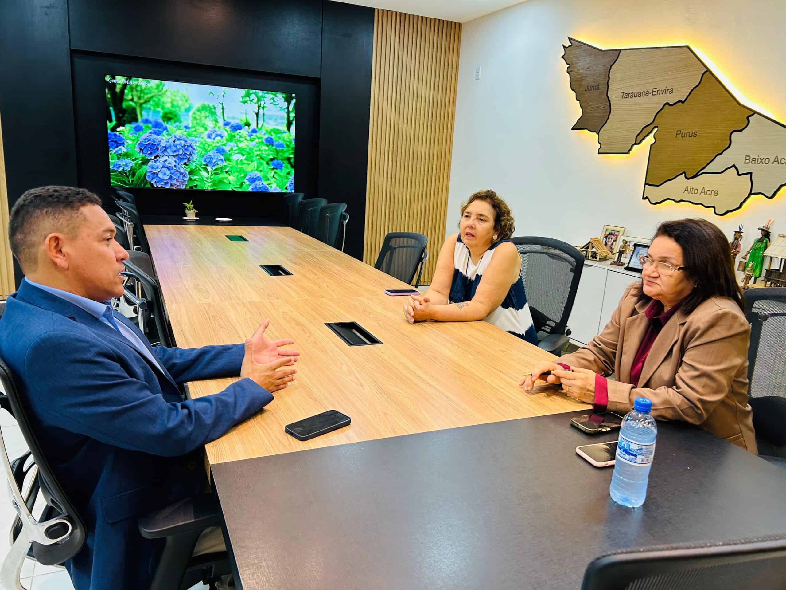 O prefeito de Assis Brasil, Jerry Correia, participou de uma importante reunião institucional no Tribunal de Contas do Estado do Acre (TCE-AC), em Rio Branco. O encontro contou com a presença da presidente da Corte, a conselheira Dulce Mattos, e da conselheira Nalu Gouveia.
