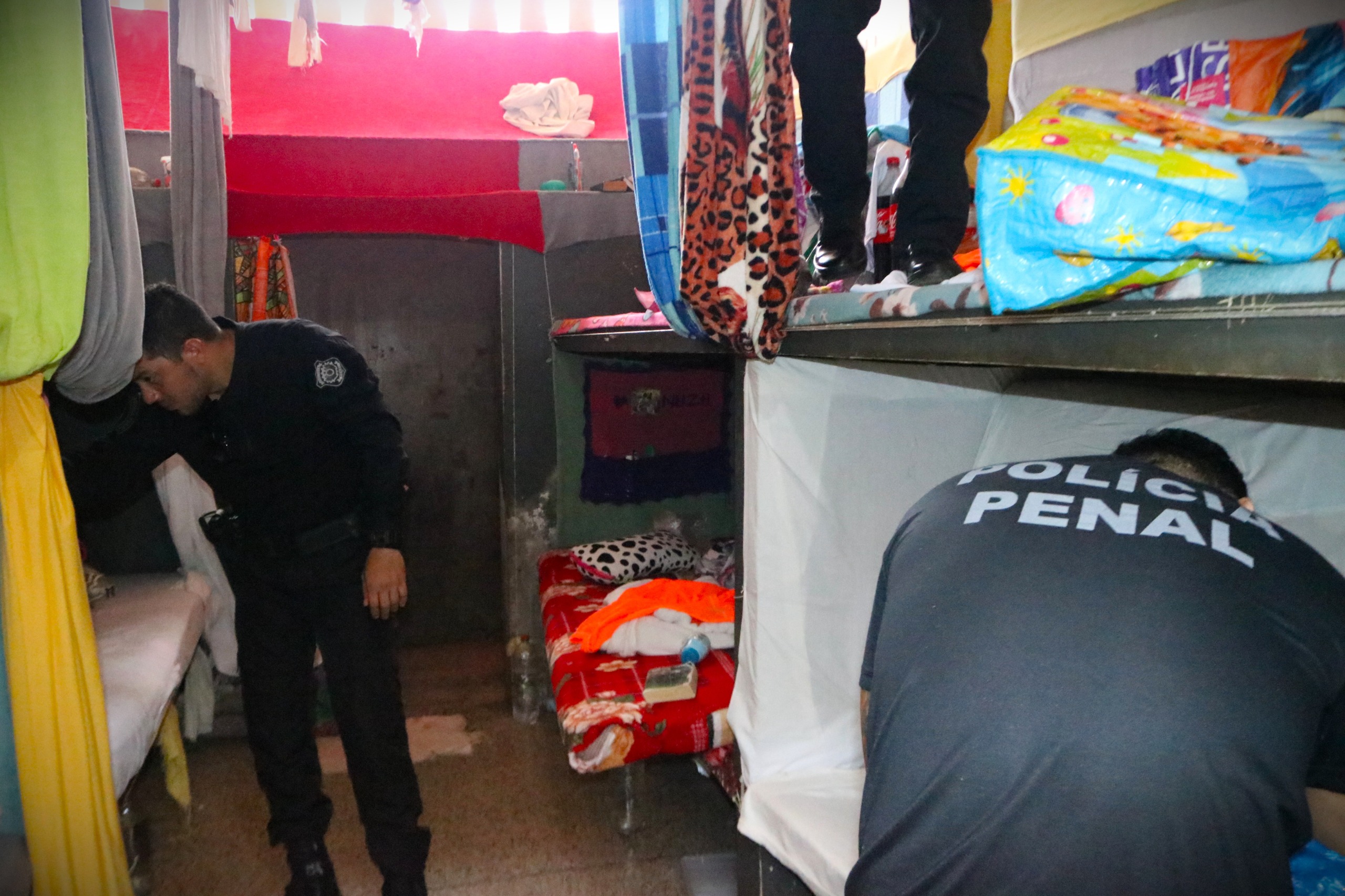 “Mais uma ação da Polícia Penal, no que diz respeito à revista no interior das celas, com a finalidade de realizar a verificação estrutural no sentido de evitar fugas”. Foto: Iapen