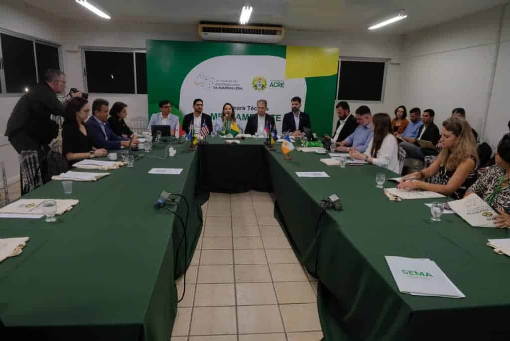 Secretários de Meio Ambiente da Amazônia Legal se reuniram, nesta quinta-feira, 11, na Câmara Técnica de Meio Ambiente e Desenvolvimento Sustentável para deliberar estratégias voltadas ao desenvolvimento econômico e social, com foco na sustentabilidade e qualidade de vida dos moradores da região amazônica. A reunião ocorreu no âmbito do 27º Fórum de Governadores da Amazônia Legal, que está sendo realizado na capital acreana, Rio Branco, até a sexta-feira, 12.