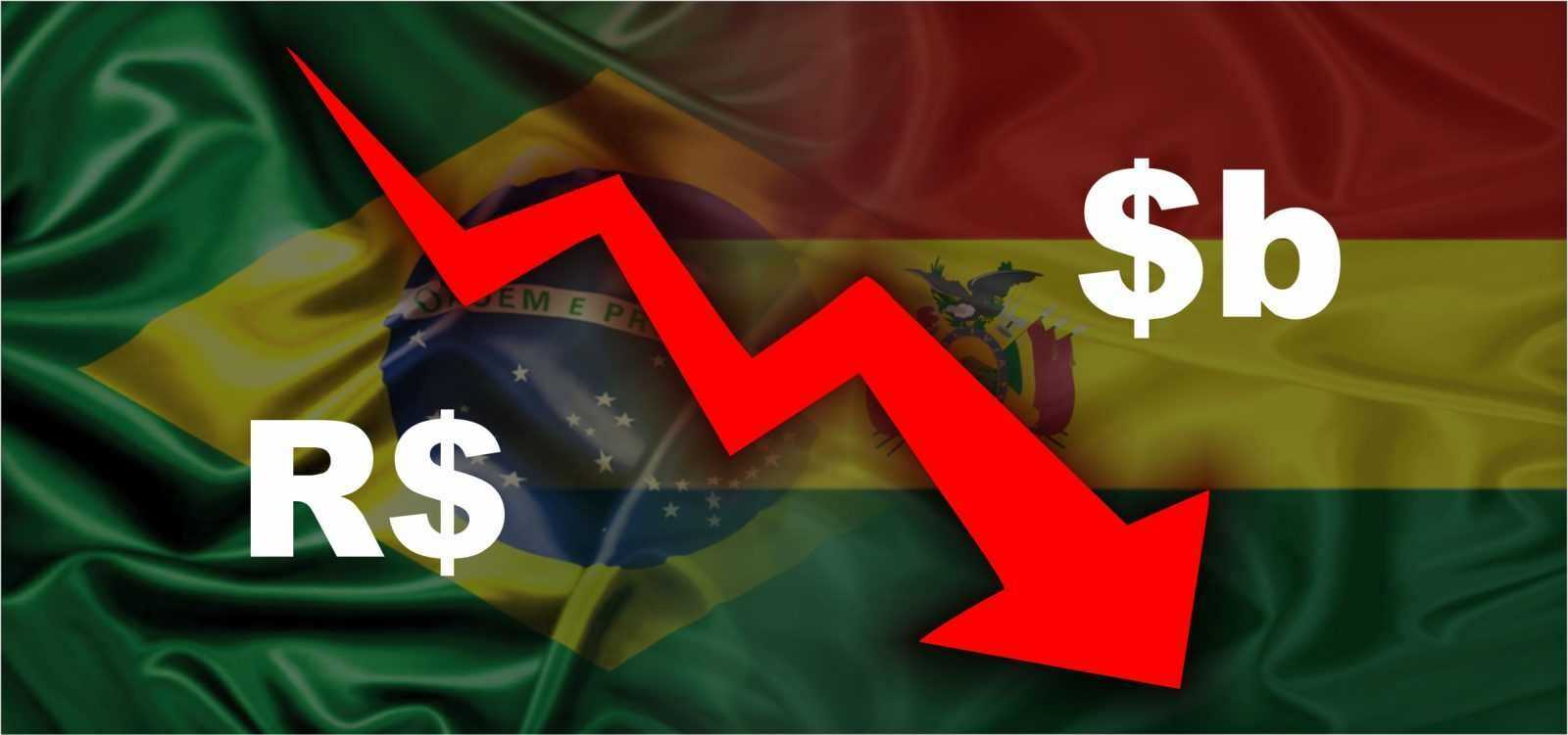 O câmbio entre os pares de moedas Brasileira (BRL) e Boliviano (BOB) vem sofrendo queda constante desde o dia 31 de Agosto de 2021, data em que o câmbio era 1,3400 e chegou ao preço mínimo de 1,2528 nesta ultima Quinta-Feira(07). A ultima vez que o câmbio chegou a tal preço, foi no dia 22 de Abril de 2021, seu valor chegou a máxima de B:1,2673 o câmbio.