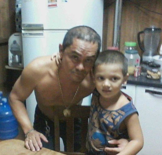 O menor com o avô, quando tinha quatro anos de idade/Foto: Arquibo de Família