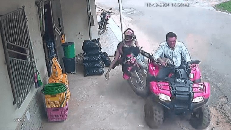 Imagens de câmeras de segurança do local capturaram o momento em que o quadriciclo, conduzido por um homem