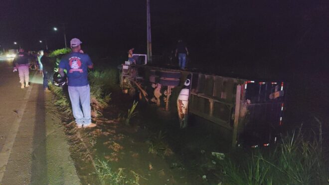 De acordo com testemunhas, o acidente ocorreu quando outro veículo tentou uma ultrapassagem, forçando Daniel a desviar para o acostamento. O peso da carga contribuiu para o tombamento do caminhão.