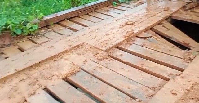 As condições críticas do Ramal do Espinhara, no município de Bujari. Um caminhão de frete que transportava aproximadamente 15 pessoas na carroceria tombou parcialmente ao tentar cruzar uma ponte deteriorada na altura do km 14