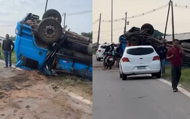 Acidente entre Custódio Freire e Universitário em Rio Branco causou lentidão durante toda a manhã; excesso de carga e má condição da pista são investigados como causas