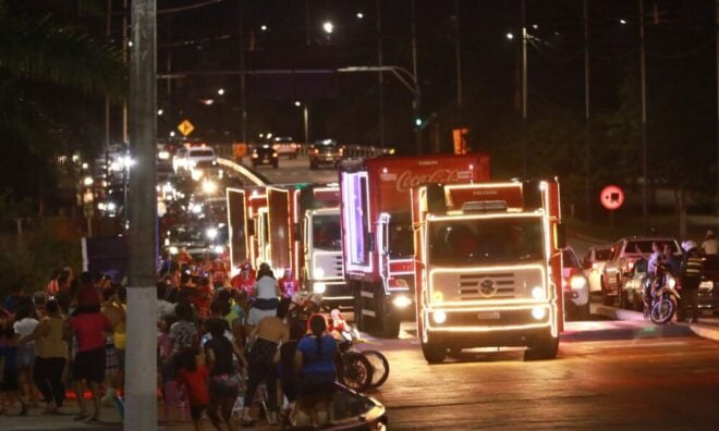 O tradicional caminhão da Coca-Cola fará seu trajeto pelas ruas de Rio Branco no primeiro sábado de dezembro, 6, a partir das 17h30. A rota contará com acompanhamento ao vivo e poderá sofrer alterações sem aviso prévio.