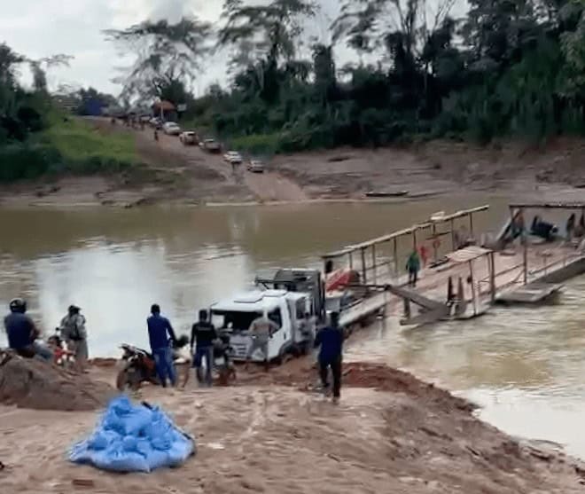 Um caminhão da empresa de energia que realizava trabalhos no Bairro da Sibéria, localizado do outro lado do Rio Acre, retornava para o lado da cidade de Xapuri pela balsa, quase acabou quase submerso.
