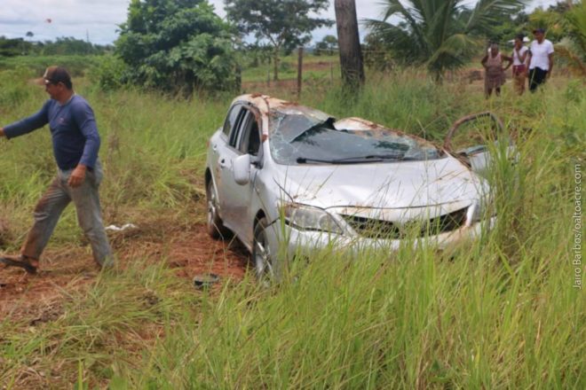 O agricultor Elenilson Rodrigues Braga ficou ferido sem muita gravidade depois que o carro que dirigia, um Corolla/Toyota, placas NAA 4754, capotou várias vezes na Br 317, 26 km antes de chegar em Capixaba, sentido interior/capital.