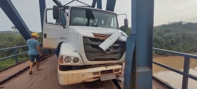 Um caminhão tanqur se chocou contra uma das colunas da ponte metálica José Augusto, único meio de ligação entre dois municípios da fronteira (Brasiléia/Epitaciolândia), por volta das 16 horas desta quinta-feira, dia 10.