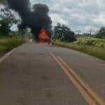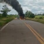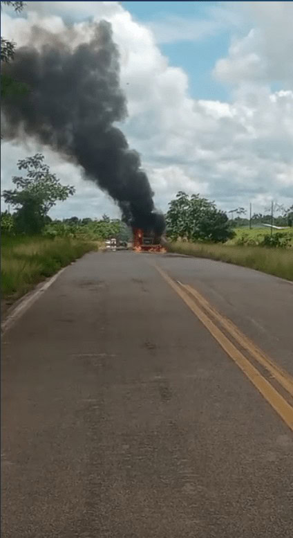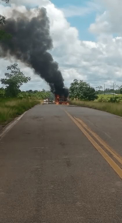 Também foi informado que o motorista conseguiu para a tempo e desligar o veículo do tanque a tempo, evitando o pior. Imagens feitas no local por moradores e mostra o as chamas consumindo a cabine.