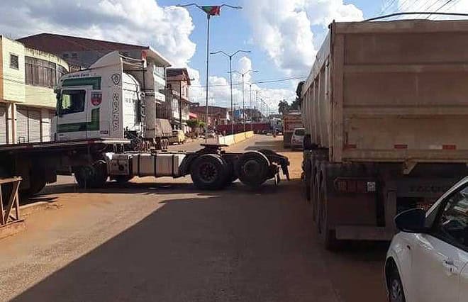Várias carretas fecharam o acesso pelo Avenida Internacional, no lado boliviano após o posto de fiscalização – Foto/Facebook