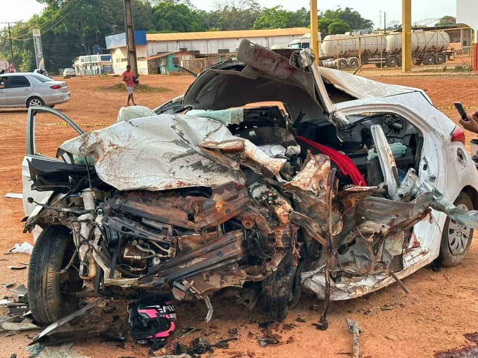 Kelry Oliveira Almeida, de 19 anos, a recém-nascida Merlyan, Valdizio Pinheiro, motorista do táxi, e uma criança, de 1 ano e 4 meses, morreram no local da batida. Acidente ocorreu na BR-364, em Acrelândia, próximo ao Posto da Tucandeira, no mês março. Foto: divulgação