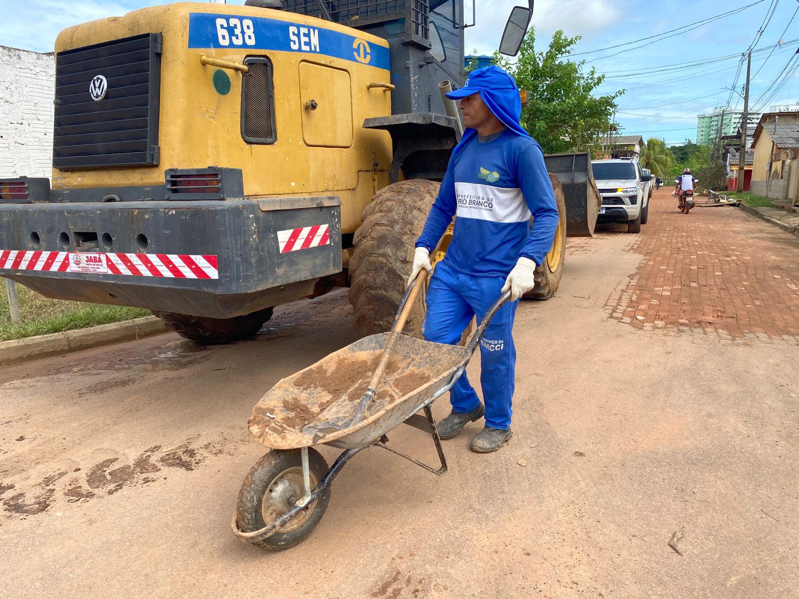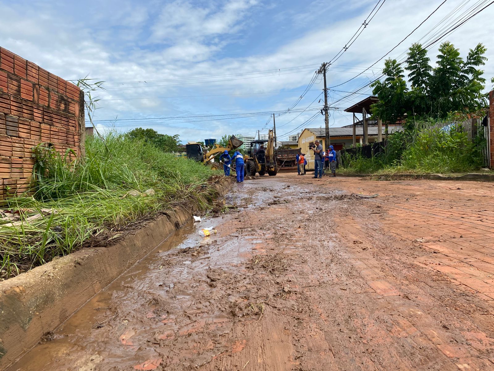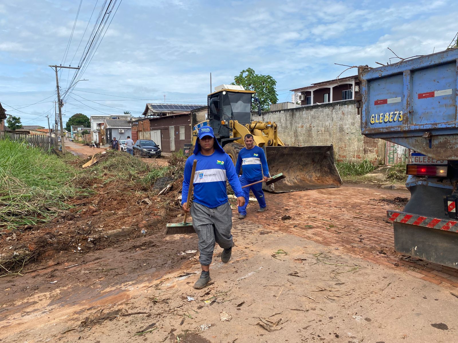 Logo nas primeiras horas da manhã, o prefeito esteve nos bairros Base e Cadeia Velha, onde já tiveram início os serviços de limpeza após a redução do nível do rio (Foto: Jeferson Carvalho/Secom)