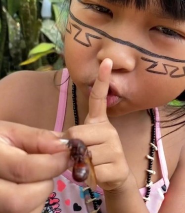 Vídeo de criança indígena comendo tanajura encanta redes e valoriza tradição alimentar amazônica