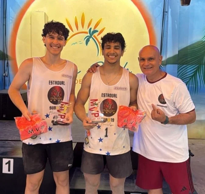Foto AAVP: Felipe, Biel e o professor Cláudio Baixinho no Prainha Beach