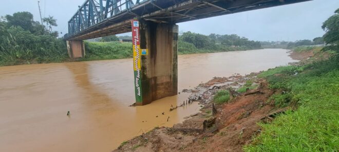O registro mostra o aumento do nível do rio após as chuvas intensas que atingiram o Alto Acre nas últimas horas. A região tem sido monitorada pela Defesa Civil devido ao alto volume de precipitações, que também elevou os níveis do Rio Acre em Rio Branco e afetou municípios como Assis Brasil, Brasiléia e Epitaciolândia.