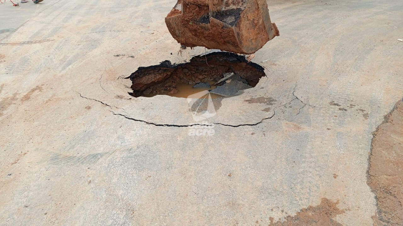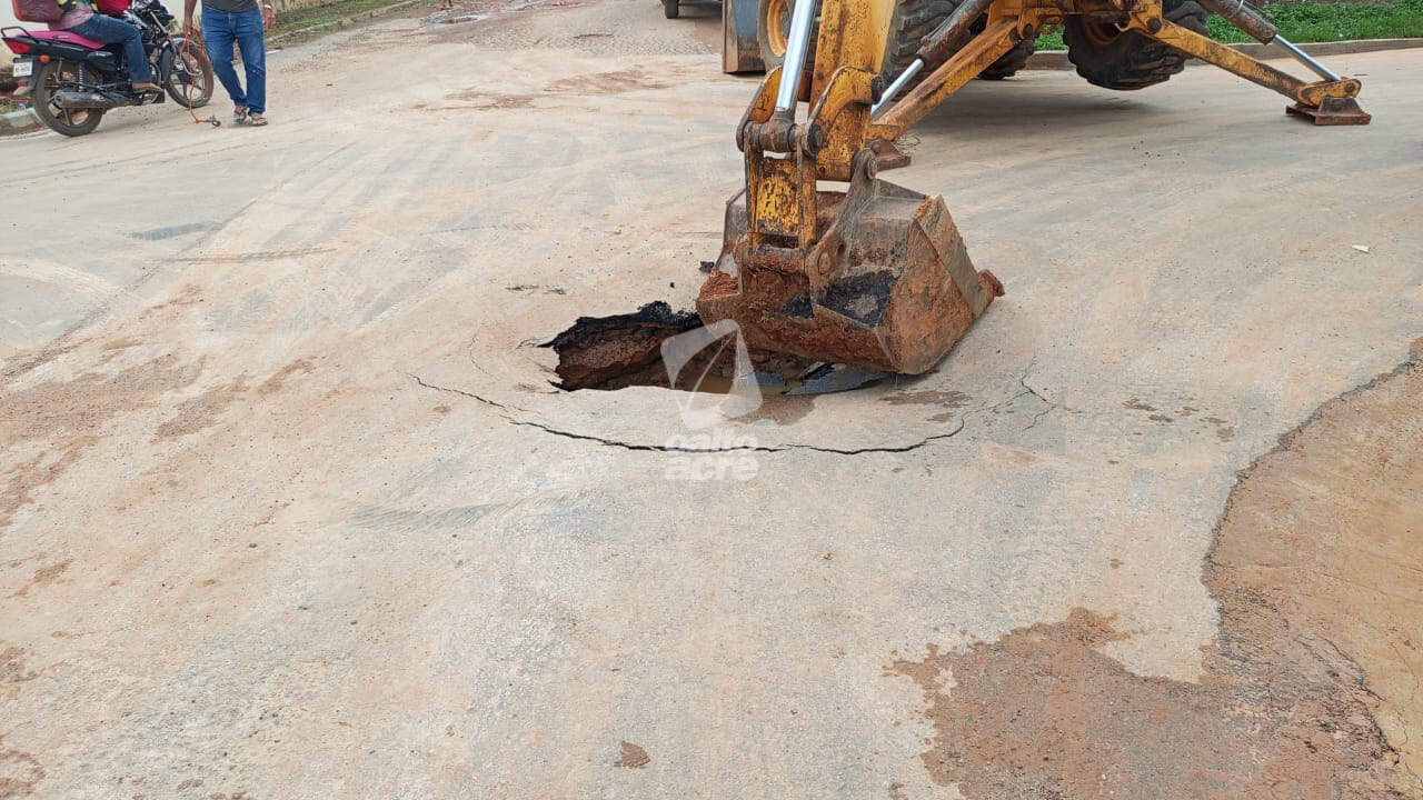 Cano estoura e abre cratera em rua de Brasiléia, na fronteira do Acre