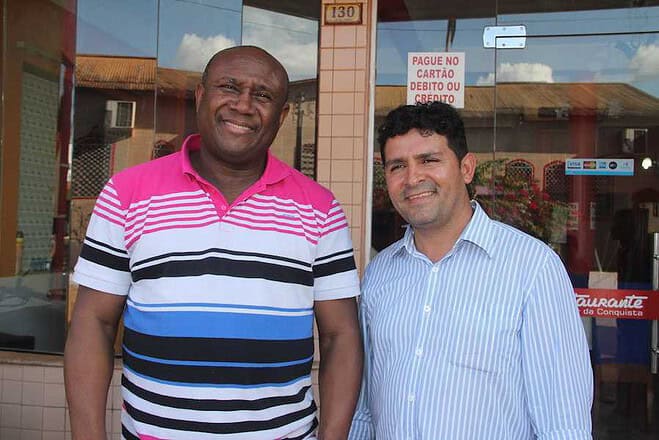 Cantor gospel, Irmão Lázaro (e) ao lado do prefeito de Epitaciolândia, André Hassem – Foto: Alexandre Lima