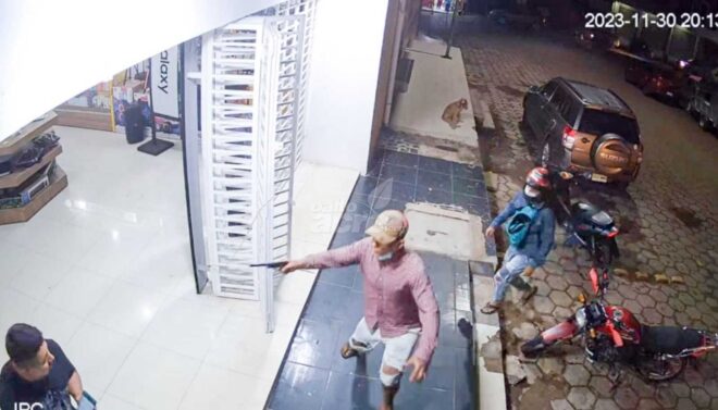 O assalto ocorreu às 20h13 desta quinta-feira, dia 30 de novembro. De acordo com as câmeras de segurança da loja comercial localizada no centro comercial de Cobija.