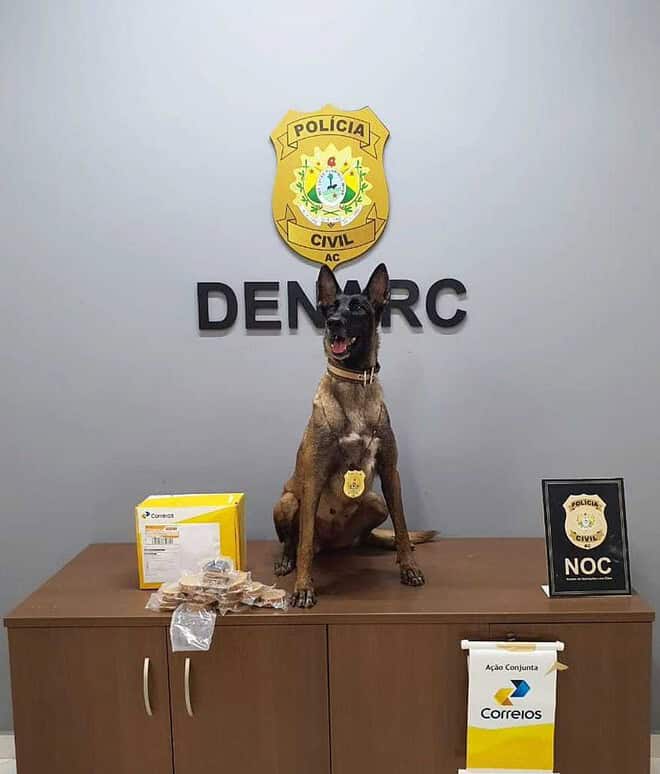 A apreensão ocorreu durante fiscalização de rotina no centro de distribuição dos Correios. Em determinado momento da abordagem a cadela de detecção de narcóticos Gana, da raça Pastor Belga Malinois, demonstrou interesse por uma encomenda, supostamente sabonete.