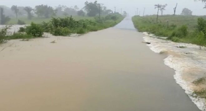 Na BR 317, dois pontos foram registrados por motoristas nos limites dos municípios de Capixaba e Senador Guiomard. Dois açudes transbordaram bloqueando a estrada para os veículos.