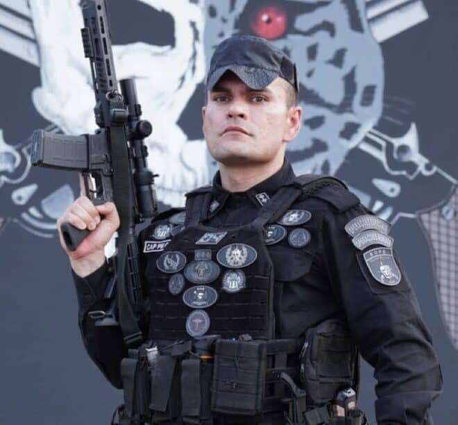 Além disso, o capitão se destaca por sua formação em cursos de alta complexidade na área de segurança pública. Em 2019, concluiu o Curso de Choque da Polícia Militar do Acre. Dois anos depois, participou do renomado Curso de Operações Especiais “Caveira”, promovido pela Polícia Militar do Piauí, e se especializou em operações rurais e negociação policial pela PM do Paraná. Em 2023, ampliou ainda mais sua qualificação ao se tornar Atirador Designado em formação pela Polícia Rodoviária Federal.