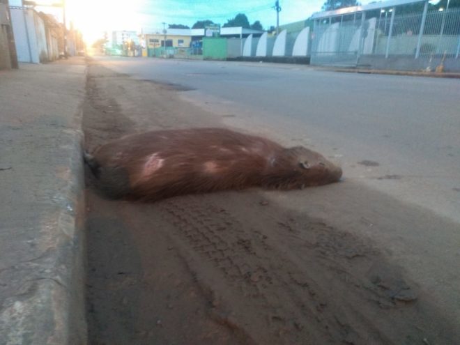 Uma capivara, de aproximadamente 40 kg, apareceu morta na Avenida Getúlio Vargas, bairro Bosque, em Rio Branco, na manhã desta quinta-feira (18).