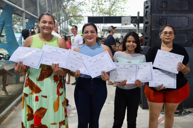 Mulheres do Calafate receberam certificados das oficinas. Foto: Alice Leão/Secom