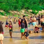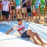Uma das grandes atrações foi o tobogã, que divertiu centenas de pessoas, entre elas o prefeito Carlinhos do Pelado. Animado, o gestor entrou na brincadeira, mergulhou nas águas do Rio Acre e reviveu memórias da juventude. “Há 20 anos eu comia o piranambu cozido aqui na beira da praia. Hoje, reviver esse momento com o povo é uma alegria imensa”, disse o prefeito, logo após provar novamente do peixe.